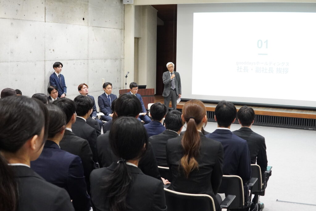冒頭では、gooddaysホールディングス株式会社 取締役 グループ人事採用管掌 兼 グッドルーム株式会社 代表取締役副社長の田所より、熱いメッセージが贈られました。