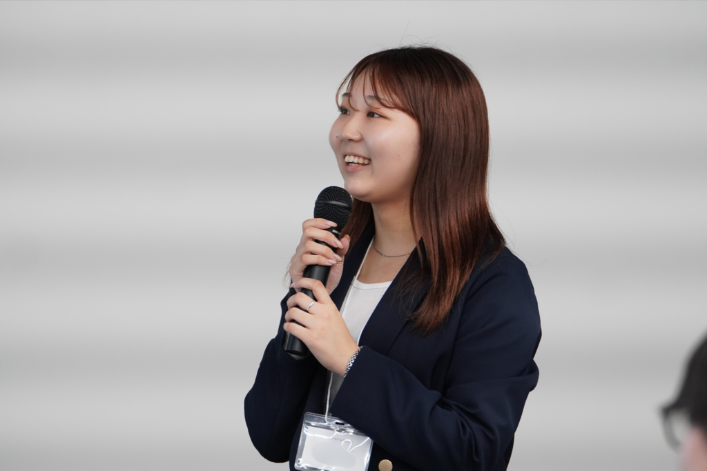 ▲オープンリソースのK.Hさん。「仕事をする上でコミュニケーションを大切にしており、積極的に動いたり、『これをやってみたいです』と自ら伝えることを意識しています。 その結果、2025年度の新入社員研修も担当もさせていただき、念願だった『人に何かを伝える』という経験ができました!」